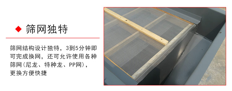 1、結構簡單,換網只需3到5分鐘,此外還有尼龍、特種龍、PP網等多種材質的篩網可供用戶選擇;