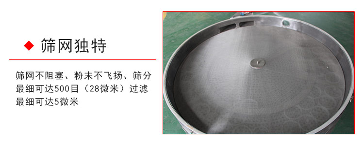 3.篩網(wǎng)不阻塞、粉末不飛揚(yáng)、篩分可達(dá)500目(28微米)過(guò)濾可達(dá)5微米。