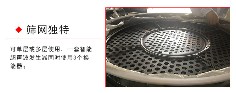 超聲波震動篩是三次元震動篩的衍生產品,它在傳統(tǒng)的振動篩的篩網加裝引入一個低振幅、高頻率的超聲振動波(機械波),從而對篩分超微細粉的效率有很大提高,本機能夠有效的解決物料因團聚、靜電、強吸附性而導致的堵網等難題,是篩分微細物料企業(yè)的首要選擇。