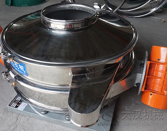 直排篩由進料口、防塵蓋、電機、彈簧、出料口組成。兩臺型號相同的振動電機對稱安裝在篩機兩側,振動電機上、下端裝有偏心重錘,通過改變上下偏心塊的相位角和重量,可以改變激振力的大小和物料的運動軌跡,進而達到篩分各種物料的目的。